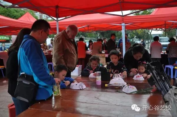 11月22日在金桥镇文体中心广场上举办的“爱.分享”社区慈善义卖活动。开心谷艺校通过面具DIY课程,捐献了130 元,虽然没有筹集到很多的资金,但是爱心满满,为慈善活动尽绵薄之力。