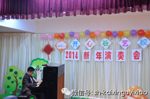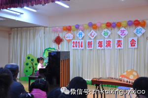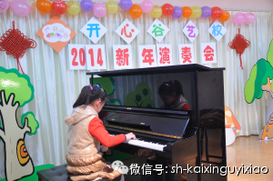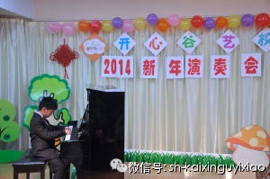您现在的位置: 开心谷艺校 >> 学校活动 >> 正文 [图文]2014开心谷新年演奏会(第二场) 2014年1月11日下午,70多位小朋友聚集在开心谷周浦校区内,等待着新年演奏会的开始,因为报名参加小朋友众多,学校特地设置了两场,整个演奏会井然有序,一年来孩子们的琴技、舞台礼仪都有了不少的长进!让我们来看看第二场的照片吧,这些可爱的宝贝你认识吗?