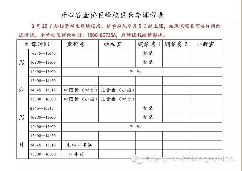 2014开心谷金桥校区课程表