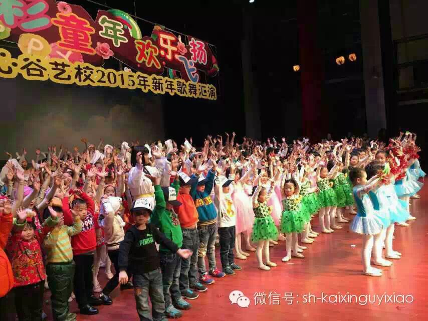 开心谷2015新年歌舞汇演终于成功落幕!近400位小演员、30多位老师和工作人员倾尽全力,让这台节目比去年上了一个档次!感谢家长们大力支持配合!很多小朋友发烧了还坚持排练!很多老师为了舞台效果几个晚上已经失眠!开心谷的队伍日益壮大!离不开各位家长、小朋友、老师们!看着400双小手在舞台上挥动,一切的爱凝聚于此,怎么能让我们不感动不努力呢! 后台的孩子紧张又有信心!等待演出的时候都那么听话,前台的精彩,是他们几个月的坚持排练与今天整整一天的辛苦付出换来的!开心谷的孩子将来一定是最最了不起的孩子!今天一定会成为他们人生中难忘的一天! 最牛的是400个孩子的谢幕没有排练,就这么有序,一次成型!我们的老师孩子都是最牛的!